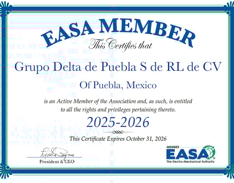 En junio de 2025 GRUPO DELTA, obtuvo la certificación por parte de WEG, lo que nos avala como Asistentes Técnicos Autorizados de Reparación, reforzando así nuestro compromiso con la calidad y confiabilidad del servicio.